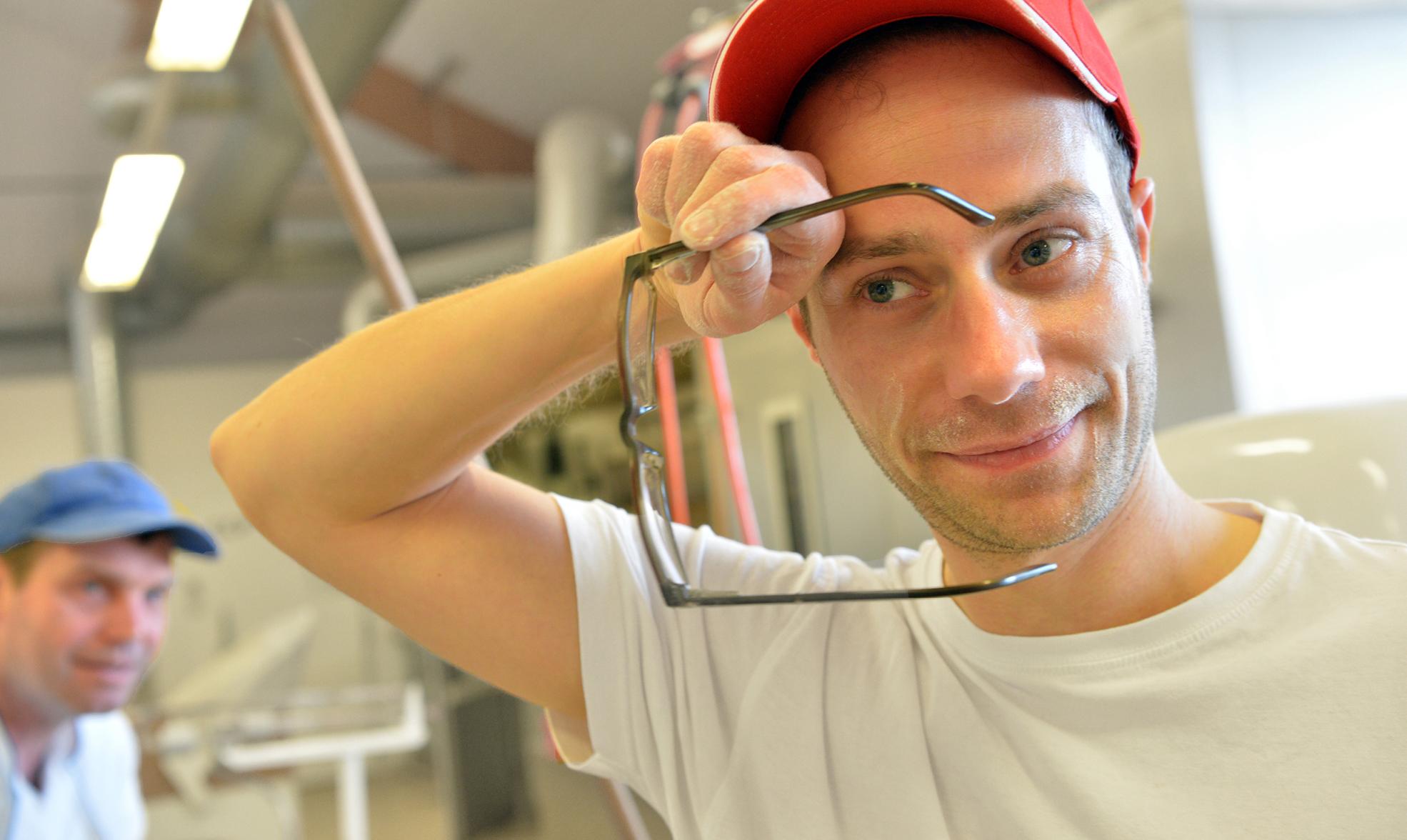 Wer genau hinsieht, entdeckt weitere Kleinigkeiten, die das gemeinsame Arbeiten von Menschen mit und ohne Handicap an diesem Ort ausmachen. Statt die Mineralwasserflaschen mit Namen zu beschriften, sind per Gummiband Fotos von den jeweiligen Besitzern angebracht, damit sie nicht verwechselt werden können. In allen Bereichen gilt es, einen gemeinsamen Nenner zu finden, sodass sich jeder nach seinen Fähigkeiten einbringen kann. „In alle Produktionsschritte haben wir Kollegen mit Handicap eingebunden“, erklärt Heil stolz. Seine Mitarbeiter motiviert er, indem er auch als Vorbild fungiert. „Wenn ich möchte, dass jeder seinen Arbeitsbereich sauber verlässt, muss auch ich den Besen in die Hand nehmen.“